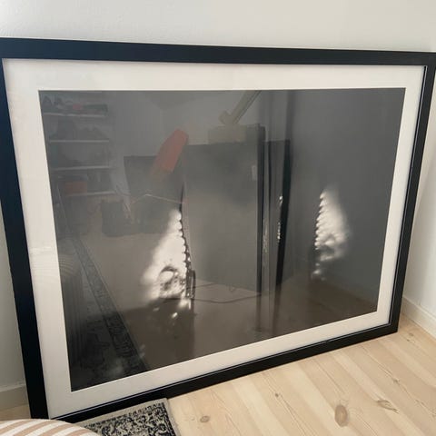Sort-hvidt fotografi indrammet med sort ramme. Passer til vægophæng i hjem eller kontor.