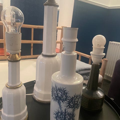 1 stander lampe + 2 bord lamper fra Mis En Demuere sælges. Alt virker med tænd sluk knap på ledning. Silver brass farvet. Der er skærm til standerlampen med ingen skærm til bordlamperne.