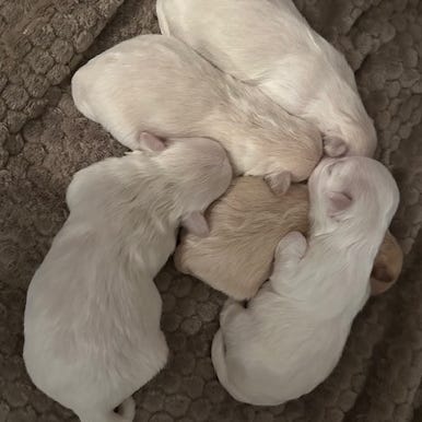 De 7 tæver, bliver opvokset i vores hjem, hvor de får masser af kærlighed fra os og vores 3 børn på 7, 9 og 11. Derfor kommer de også til at opleve alle hverdagens larm og lyde.