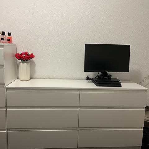 Giver denne kommode væk, der brugsspor, hvilket man kan se på pladerne i bunden ikke noget man lægger mærke til. Nederste skuffe skal nok fikses af en der er lidt handy😂