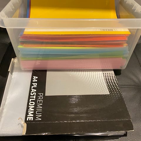 Bantex Plastiklommer i A4-størrelse, transparente, 100 stk i pakningen. Anvendes til opbevaring og beskyttelse af dokumenter og farvede chateques/plastlommer! Blokke mv. Alt helt nyt. Fra nedlagt fabrik/virksomhed. 2 fyldte flyttekasser.