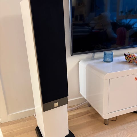 Sælger et sæt DALI Mentor 5 gulvhøjttalere, som leverer imponerende lyd i et elegant og kompakt design. Perfekte til dig, der vil have high-end lyd uden kæmpe kabinetter i stuen.