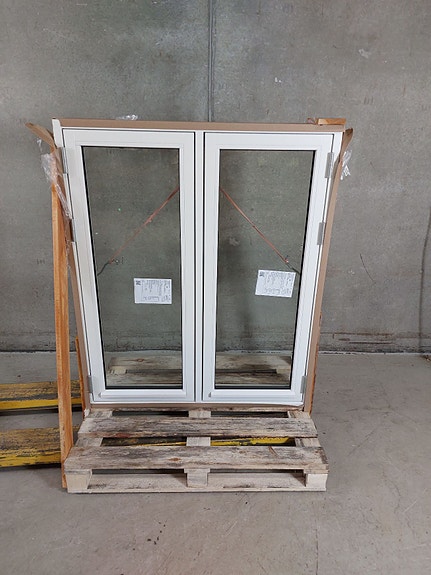 Pladedørsparti i træ med 3-lags energirude, hårdttræsbundstykke og 3-punktslås. Der er monteret låsecylinder på begge sider, greb og nøgler medfølger løst. Outlet produkt som kan have mindre ridser og buler.