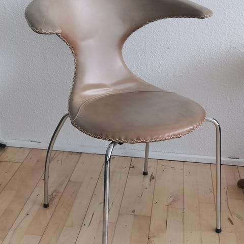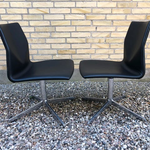 4 stks Dan-Form Flair stole i brun læder. Designet af Sanne Protin. Har brugsspor, men i overordnet god stand.