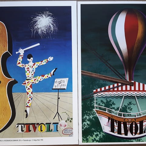 Plakat tryk , Ib Andersen , motiv: Ballongynge Tivoli, Tivoli plakat med ballongynge. Reproduktion af Ib Andersen litografi. Har en lille fold i papiret øverst, men ingen revner.