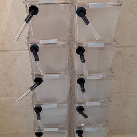 Kampfisk kan godt lide at hvile sig, og derfor er der specielle kampfisk huse de kan "ligge"/gemme i. Jeg har i 3 forskellige farver og 2 forskellige størrelser.