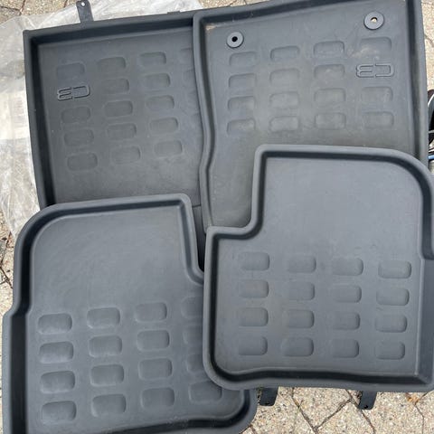 Et sæt af to front- og to bagmåtter lavet af formstøbt sort gummi.