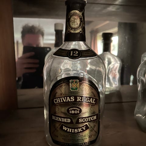 Vintage magnum flaske fra Ballantine's Finest Blended Skotch Whisky med skænkeprop og med alle etiketter intakt