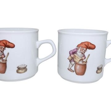 Bing & Grøndahl julestel, stort kaffekrus med nisse der rører dej.