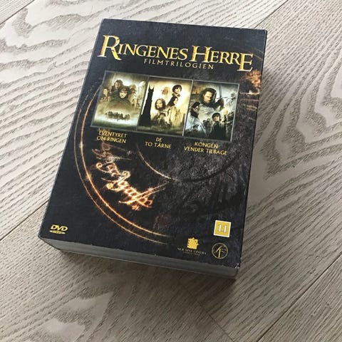 Ringenes Herre Film Trilogien DVD indeholder de tre film i Ringenes Herre-serien samlet i en boks. Produktet er på dansk og indeholder biografversionerne af filmene.