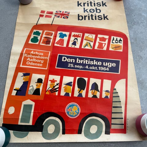 Vintage London plakat / kort “The Bastion of Liberty” Kerry Lee, 1947, opklæbet på masonit, patina hist godt pist, mål: L: 127, 5 x H: 102 cm