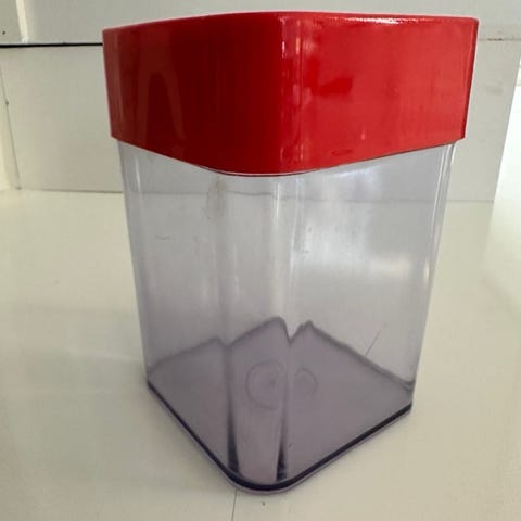 Erik Kold plastbøtte med rødt skruelåg. God stand. Mål: højde: 19, Ø: 13 cm (i bund). Pris: 30 kr kontant. Har mere med E. Kold. Se mine andre annoncer. Sender først ved køb for 100 kr før Porto.