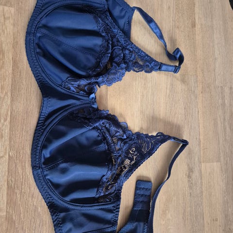 BH, med bøjle, Ukendt, str. Formentlig 75C, Hvid blå sort, Ukendt, Næsten som ny, Brugt få gange