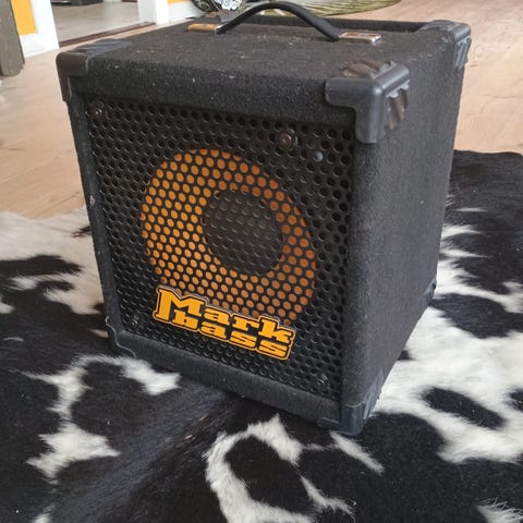 Markbass Black Line basforstærker med flere kontrolknapper til justering af lydstyrke, tone og andre lydparametre. Enheden har et håndtag på toppen for nem transport og et robust kabinet. Designet til basguitarbrug.