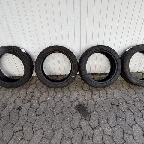 Stand: De har kun kørt én kort tur (hjem fra forhandleren) på en BYD Atto 2, før de blev udskiftet med helårsdæk. De har dermed maksimal mønsterdybde og er i perfekt stand.