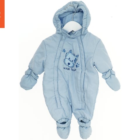 Heldragt i lyseblå med lange ærmer og ben, samt mørkeblå detaljer ved halsen, håndleddene og anklerne. Dragten har trykknapper på forsiden og et Baby Snoopy print på venstre side af brystet samt teksten 'Baby Snoopy' langs venstre ben.
