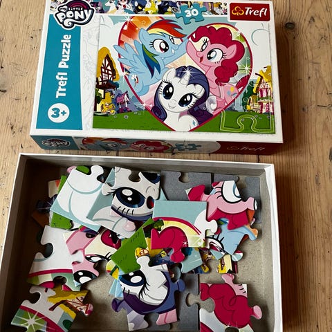 Et puslespil med 30 brikker af mærket 'Trefl'. Det har et farverigt motiv fra 'My Little Pony' serien og er egnet til børn over 3 år. Størrelsen af puslespillet er 33x23 cm.