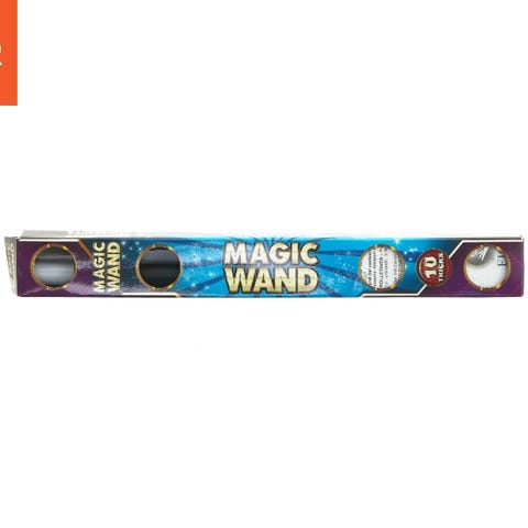 Dette er en tryllestav med en kanin, der dukker op af en sort hat. Kaninen er hvid med lyserøde ører og har en rød sløjfe omkring halsen. Hatten er fastgjort til en pind, som bruges til at manipulere kaninen op og ned. Produktet er i stand til at skabe en illusion af en kanin, der magisk kommer ud af hatten, som ofte ses i trylleshows og magiske forestillinger.