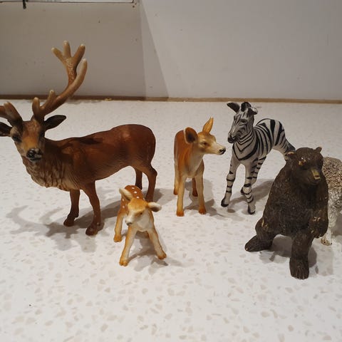 Figurer af husdyr og vilde dyr fra Sleich (str. 4,5-12 cm)