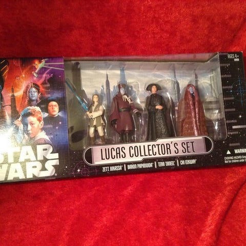Der er hele 5 figurer med i sættet bla. C-3PO, R2-D2, Jango Fett, Anakin Skywalker