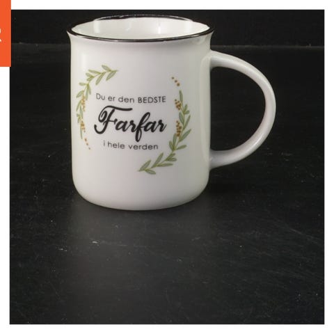 Porcelænskrus med printet tekst 'Lykken er...at have den bedste VEN som dig' og en illustration af to figurer. Bunden af kruset viser logoet og navnet 'Det Gamle Apotek'. Kruset har en diameter på 8,5 cm og en højde på 9,5 cm. Velegnet til varme drikke.