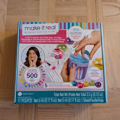 Martinelia Yummy neglekunst sæt indeholder to neglelakker, en pakke negleklistermærker og en lille neglefil. Sættet kommer i en farverig pakke med illustrationer af kaniner og slikmotiv. Neglelakkerne har lyserøde låg og flaskerne er dekoreret med kaninillustrationer. Klistermærkerne er designet med små hjertemotiver og kaniner. Sættet er ideelt til børn og designet til sjov og kreativ leg med neglekunst. Produktet er let at anvende og nemt at vaske af.