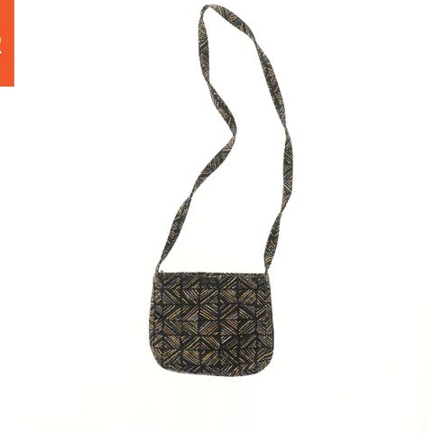 Denne lille skuldertaske/pung er gul og fremstillet af læder. Den har en remlukning med en metalspænde og en simpel skulderrem, der kan justeres med en knude. Tasken har en funktionel størrelse på 12x10 cm, ideel til opbevaring af små genstande såsom mobiltelefon eller kort. Tasken har synlige syninger og har en enkelt rum til opbevaring.