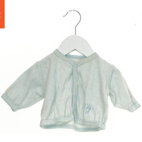 Langærmet grå trøje med tekstur på forsiden og et lille gult bamsemotiv. Trøjen har to knapper ved skulderen for nem påklædning.
