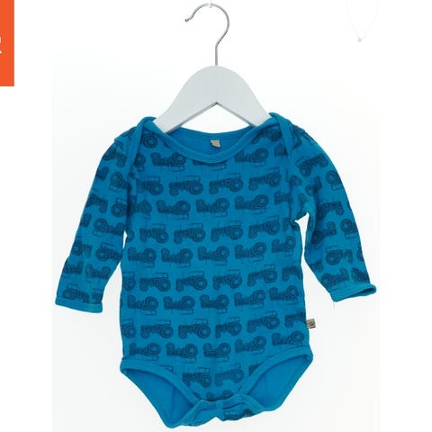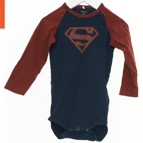 En hvid bodystocking med korte ærmer. På fronten er der et farvet Superman logo i rødt, gult og blåt. Den har praktiske knapper for neden til nem skiftning af ble.