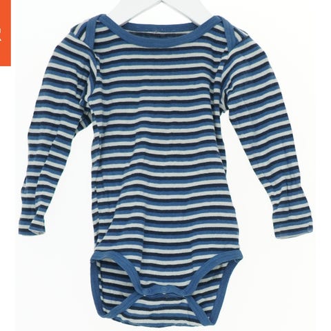 Langærmet bodystocking i blå farve med motiv og tekst 'Handyman' foran. Motivet inkluderer værktøjer som hammer og skruenøgle i farverne blå og grøn. Bodystockingen har knapper i bunden og rund halsudskæring.