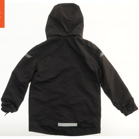 Sort vinterjakke med aftagelig hætte og refleksdetaljer. Den har lynlås og knaplukning samt to forlommer, der kan lukkes med lynlåse. Jakken har en logo diskret mærke på fronten og elastiske manchetter.