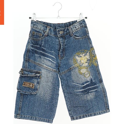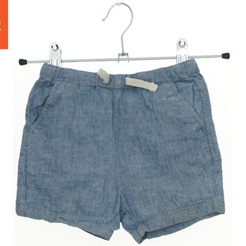 Børneshorts i rød farve, med elastik og hvid snor i taljen. Shortsene har to sidelommer og et Winnie the Pooh motiv nederst på det ene ben.