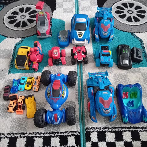 bestående af forskellige biler og køretøjer i forskellige farver og størrelser. inkluderer både små og større biler samt nogle fjernstyrede modeller. Egnet til børn og samlere.