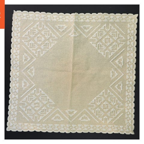 Hæklet borddug i hvid farve med flot mønster.