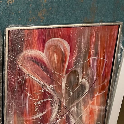 Abstrakt maleri med hjerter.