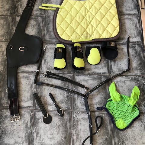 Plade til fortøj fra dyon. Lavet i læder med stålspænder. Kan justeres i længden både oppe ved tøjlerne og ringen på bringen.