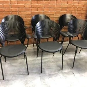 Super flotte proff. nylakerede og nypolstrede sorte Trinidad stole, ny- pulverlakeret sorte stel, med armlæn originale fra Fredericia Furniture pris er for 6 stk bemærk særligt den lækre detalje med polstrede armlæn👌🏻