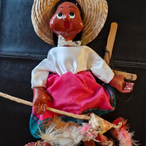Dukker, Marionetdukke, Giv et bud. Marionet. Ca 60cm høj med snore og håndtag.