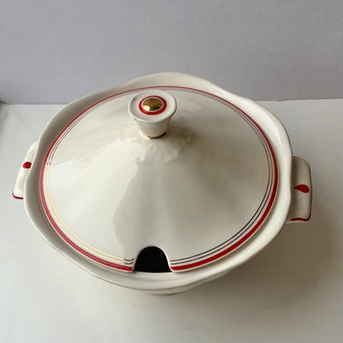 Arabia Finland terrin i perfekt stand. Længde med håndtag 31 cm. Design Greta Lisa Jäderholm-Snellman. 1940’erne