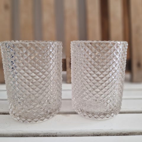 Lysestager, 2 stk. Lysestager til fyrfadslys i glas. Fra The Tall Ships race 2004. Sender gerne.