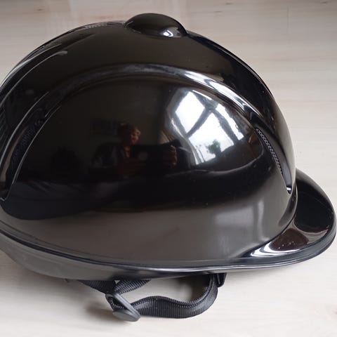 Casco Nori Enhorn cykelhjelm i sort med motiv af en enhjørning og stjerner. Hjelmen har ventilationshuller og en skygge foran. Størrelse XS (50-52 cm).