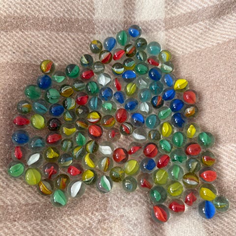 9 store flotte gamle glaskugler guldfarvede/gyldne