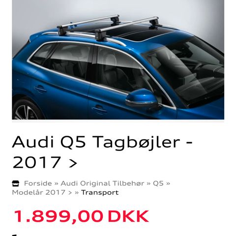 Originale Q5 tagbøjler - aldrig været i brug, og derfor som nye. Passer til årgang 20-24, men om de passer på andre modeller også vides ikke.