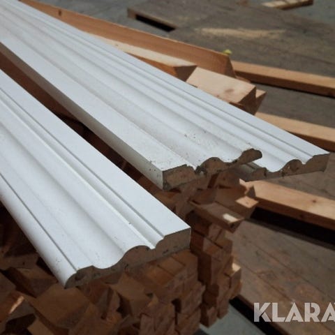 Indfatning lister rundt om døre i træ hvid malet. Helt nye uåbnet. Mål: hvid 65x14x2200mm