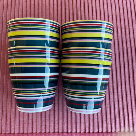 Tre krus, et med hank + skål Ø 14cm, h.7cm. Pris for det hele