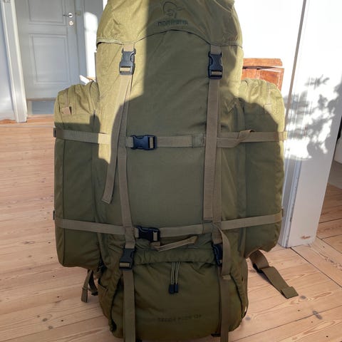 Norrøna para ranger synkron Pack i grøn farve. Rygsækken er specielt udviklet til forsvaret og beregnet til den brug, dette medfører at den Særdeles velegnet til lange ture med tung vægt i bagagen. 120+ liter Fremstillet i slidstærkt materiale med flere justerbare remme og lommer til opbevaring. Designet til at bære tung last med komfortable skulder- og hoftebælter. Og indstiling af ryggen efter højre. Velegnet til udendørs aktiviteter og længerevarende ture.
