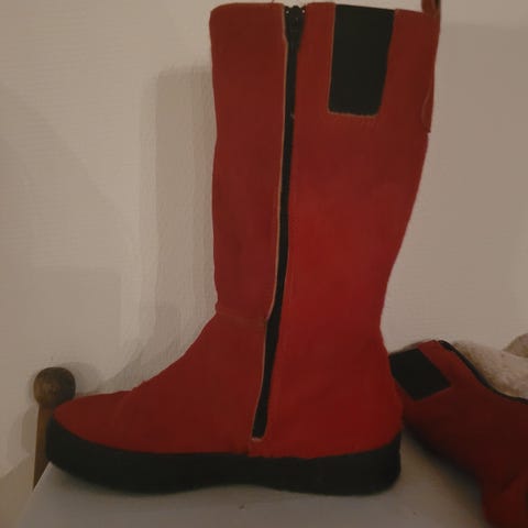 Højskaftet brune skindstøvler, god til vinteren. KØB DEM FIX OG FÆRDIG.