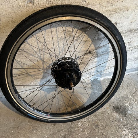 1 x forhjul sælges, har siddet på en Cargo kid EL delux ladcykel.