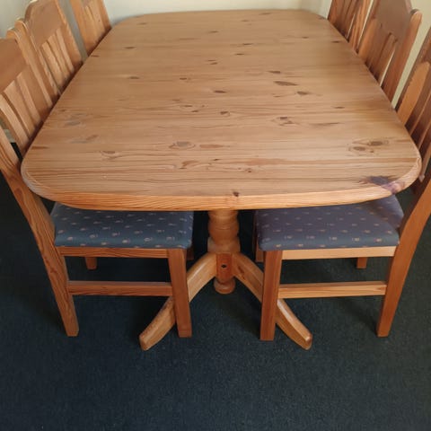 Afsyret spisebord med 8 stole