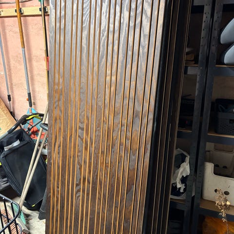 Akustik Paneler Eg finer. (Möelven) 600x2400 mm. 4 stk. med grå baggrund. Helt nye uåbnet.